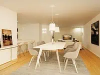 L'appartement baigné de lumière offre des espaces généreux et une excellente distribution des pièces ainsi qu'une grande terrasse, une cuisine entièrement équipée et un garage privé en sous-sol.