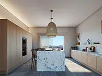 -Plans de travail, plinthes et étagères en marbre d'Estremoz.