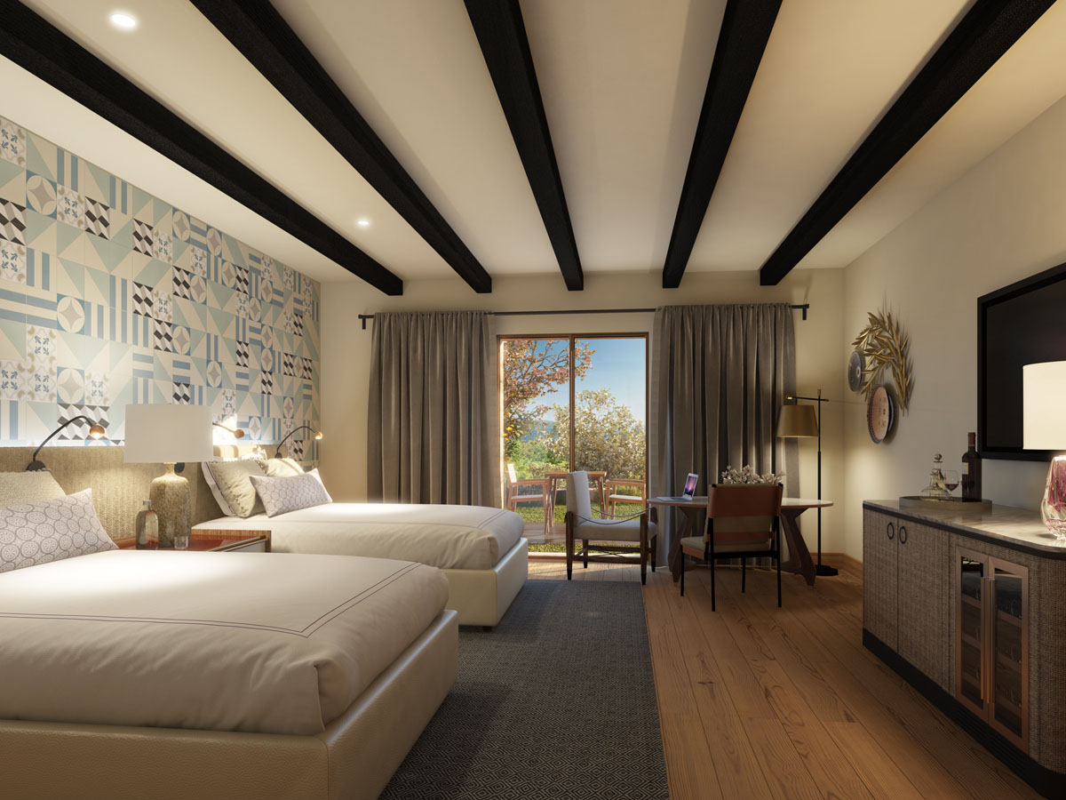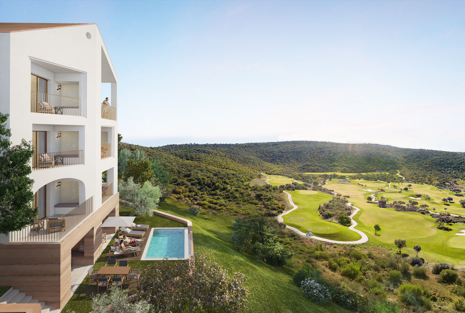 Cette nouvelle résidence de luxe du complexe Ombria Resort surplombe une colline et un parcours de golf.