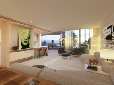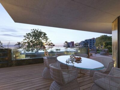 L'atout majeur : un vaste balcon privatif de 27.5 m² prolonge l’espace de vie avec vue dégagée sur le bleu de l'océan.