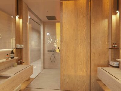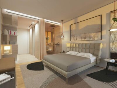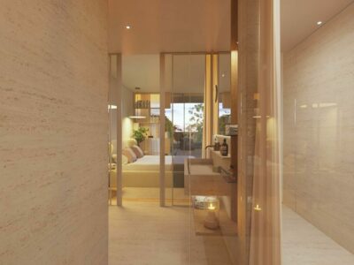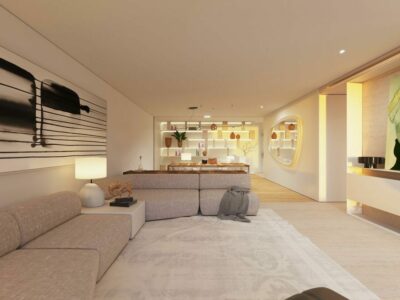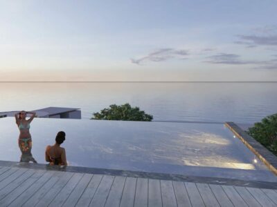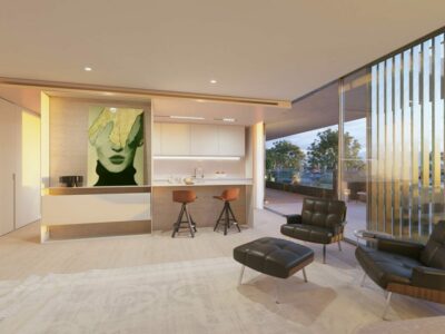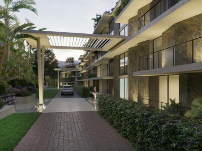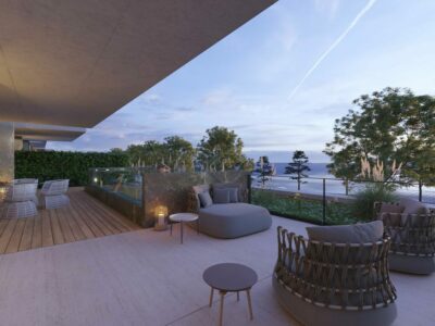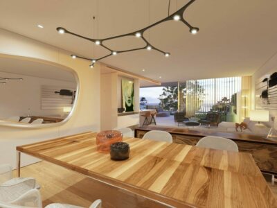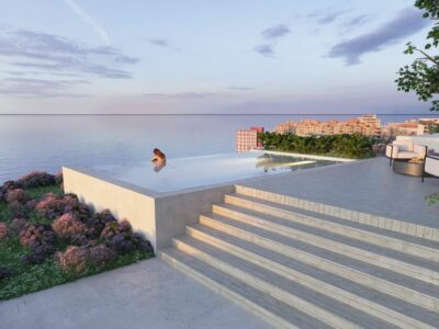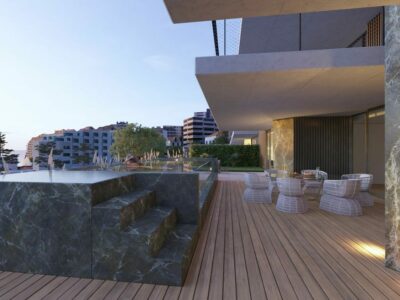 La résidence dispose également d'une piscine à débordement avec vue sur la mer, d'une piscine pour enfants, d'une salle de sport, d'espaces vert et de détente, de zones communes et de travail, ainsi qu'un parking pour les résidents et les visiteurs.