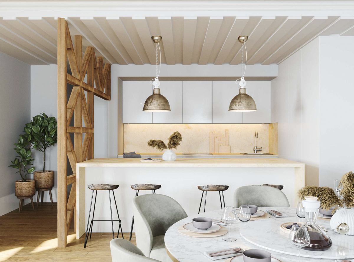 Un appartement au style traditionnel, bien équipé, avec des matériaux nobles et durables, construit avec des matériaux de qualité.