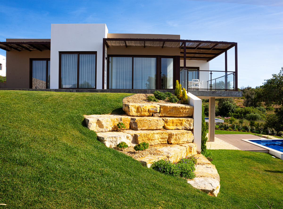 Son architecture s'insère parfaitement dans le quartier de Lagoa e Carvoeiro et propose des maisons neuves conçus afin d'offrir un lieu de vie optimal aux futurs propriétaires, avec un qualité de confort intérieur et des finitions haut de gamme.