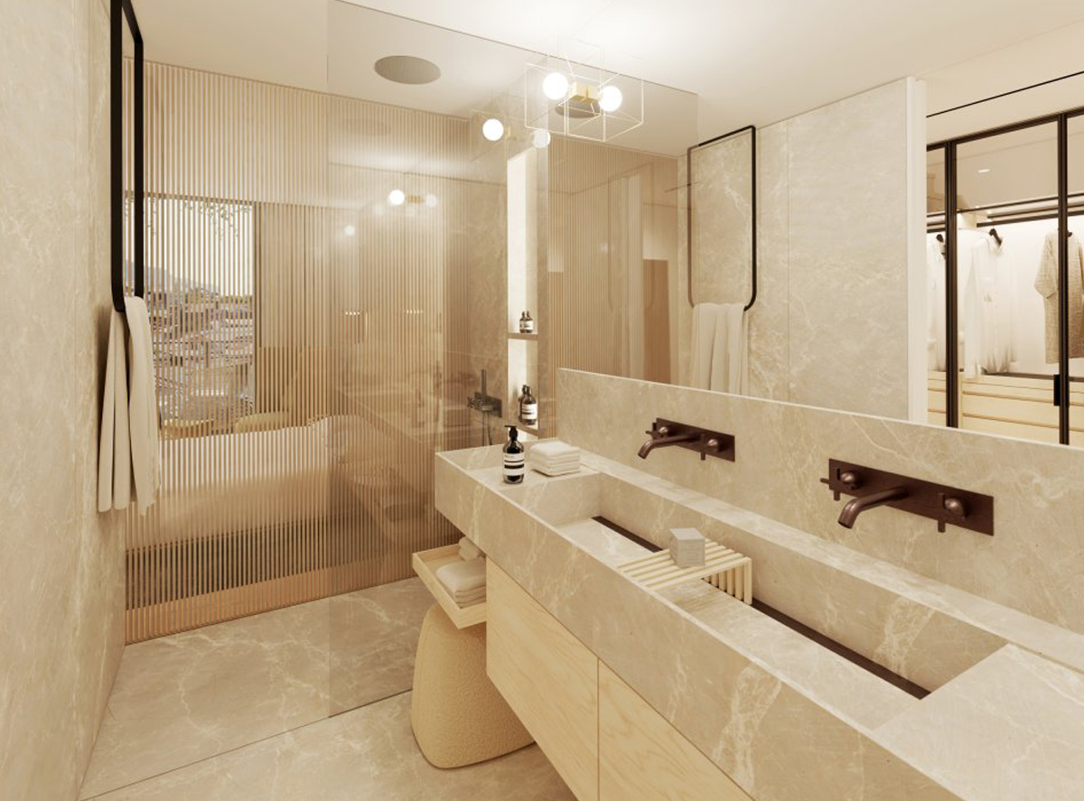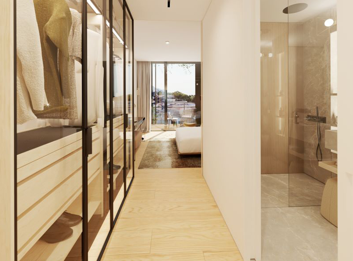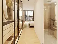 Votre futur appartement dispose également de placards encastrés, cuisine équipée, domotique, dressing, hotte aspirante et salle de bain meublée.