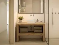 L’appartement offre au total 2 chambres, 2 salles de bain et un w.c séparés. Il est très pratique et bien optimisé.