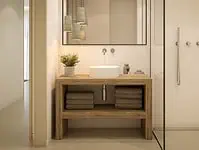 L’appartement offre au total 3 chambres, 3 salles de bain et un w.c séparés. Il est très facile à vivre et bien conçu.