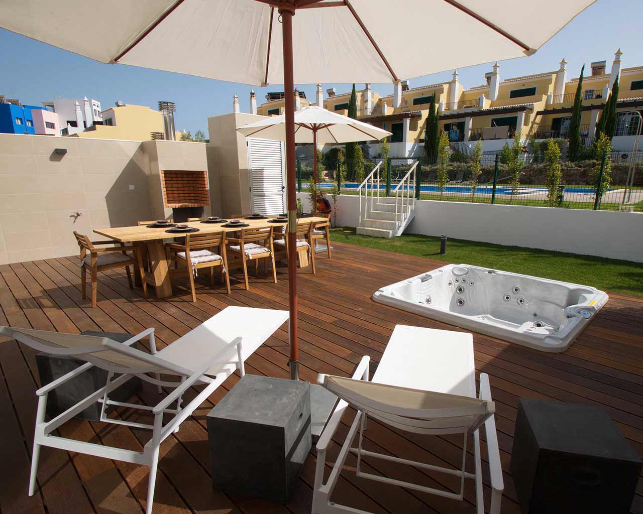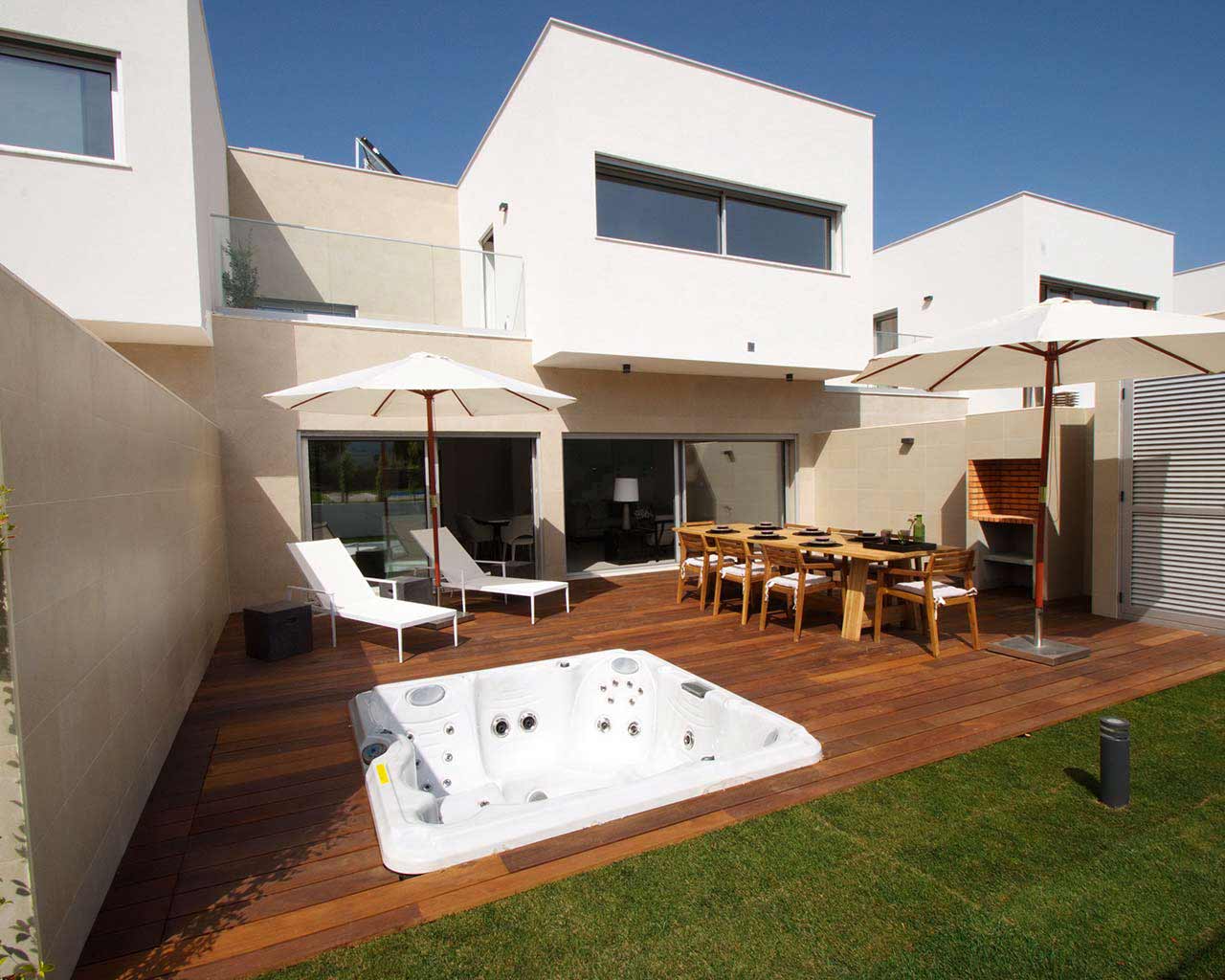 Chaque villa offre de beaux espaces extérieurs, avec terrasse individuelle en bois exotique, de grands balcons, et des agréments tels que, jacuzzi, jardin, barbecue, carport équipé d’une prise de recharge pour voiture électrique.