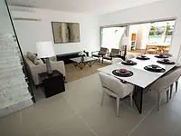 Les villas se composent toutes, d’une grande pièce à vivre avec salon et cuisine ouverte entièrement équipée, ainsi que d’une buanderie.
