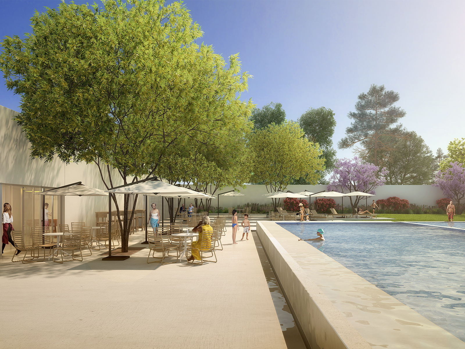 The private residence offers its residents gardens, a large swimming pool and a Club-House in a green environment.