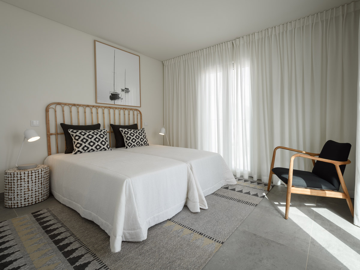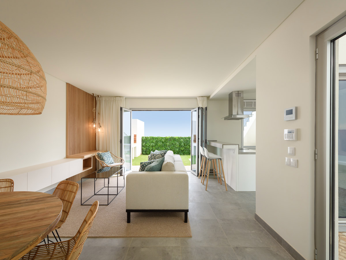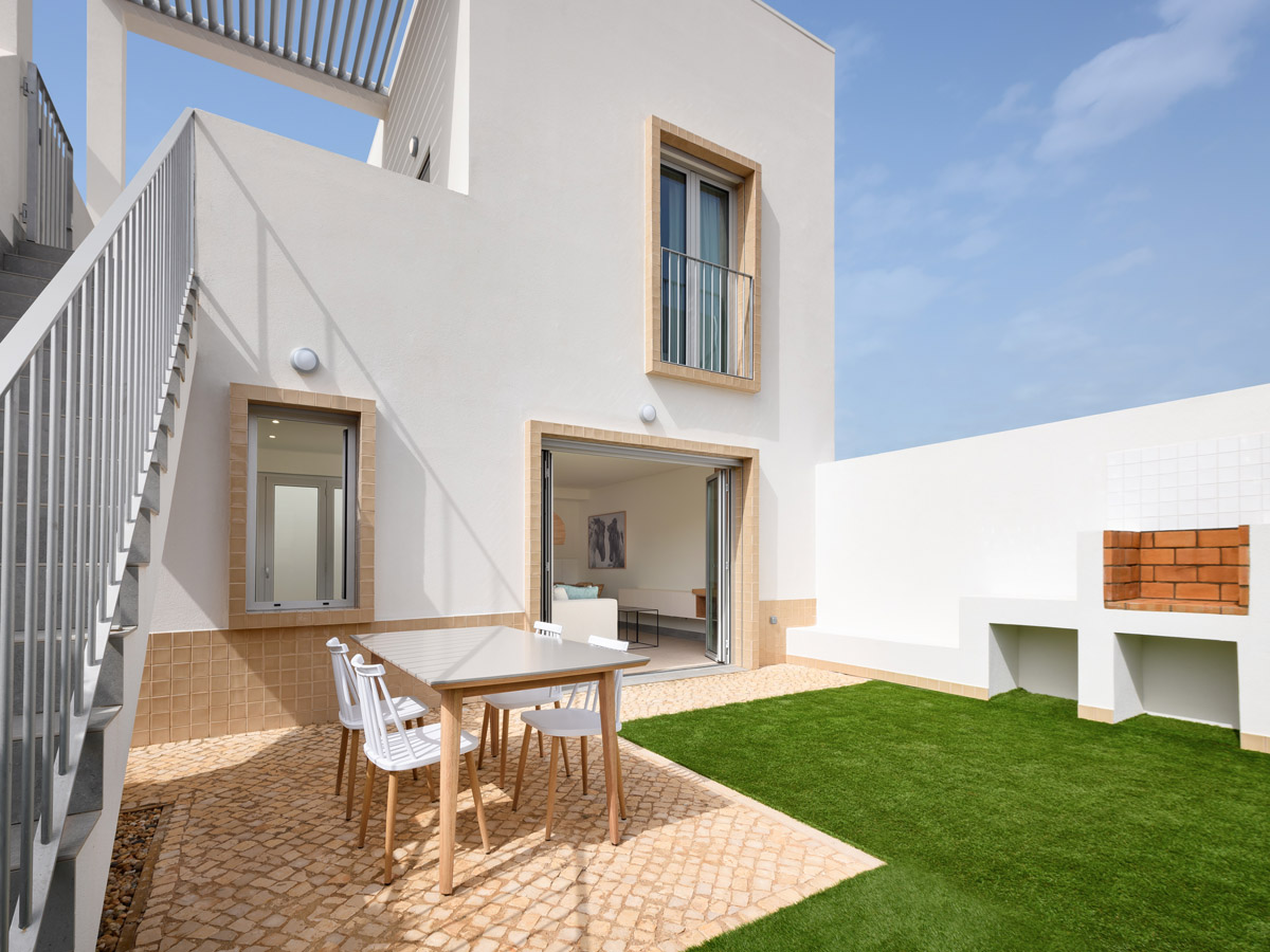 The location of each house in the residence has been studied in order to offer a perfect exposure while respecting the privacy of each one. The view over the gardens and outdoor spaces gives the pleasant feeling of being in a typical Portuguese village surrounded by nature.