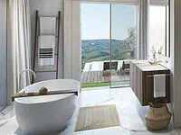 -Free-standing bathtub in master bathrooms by Agape or equivalent