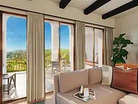 This new luxury residence of the Umbria Resort overlooks a hill and a golf course.