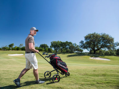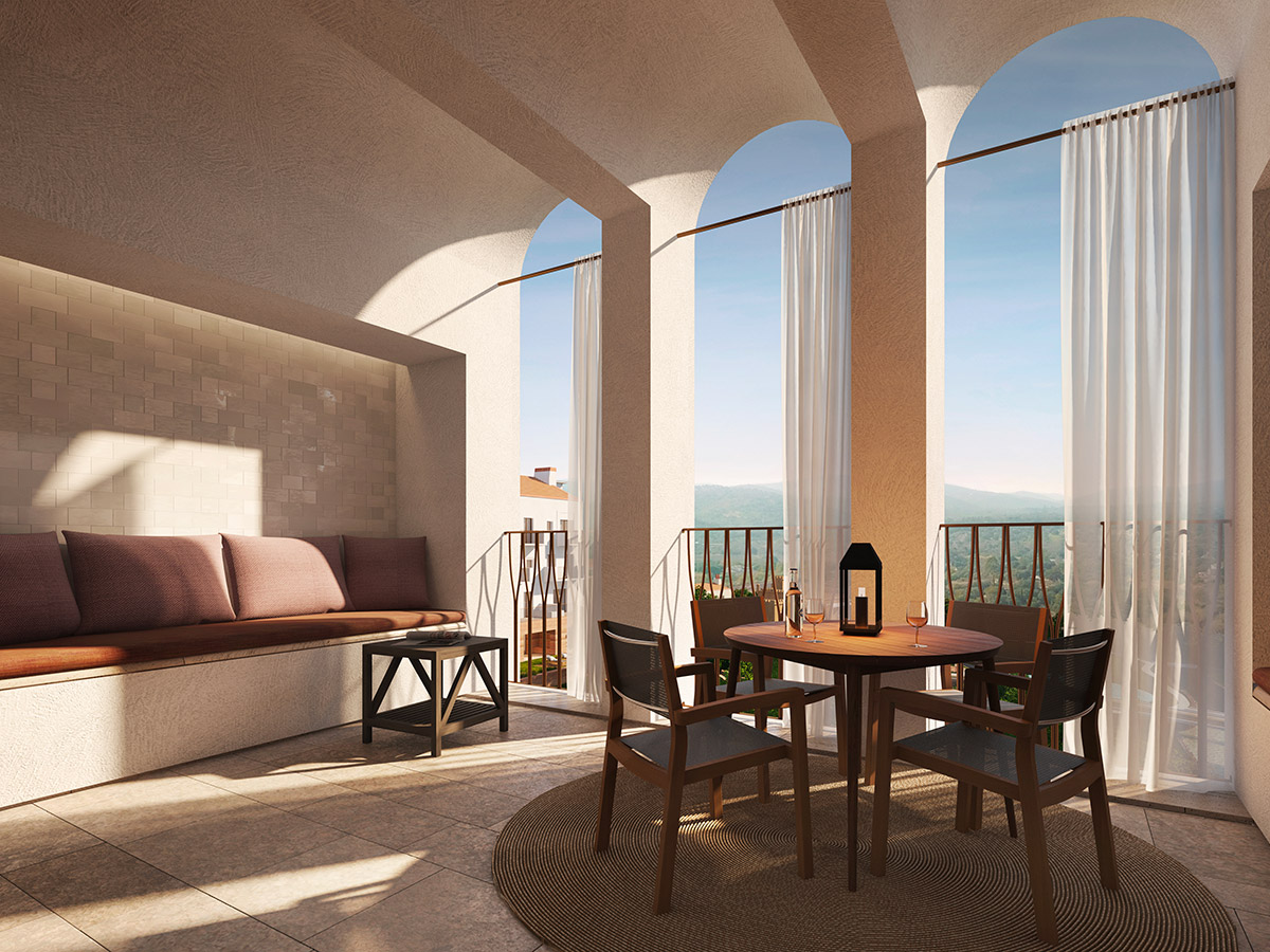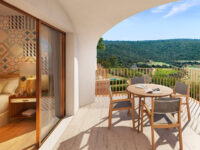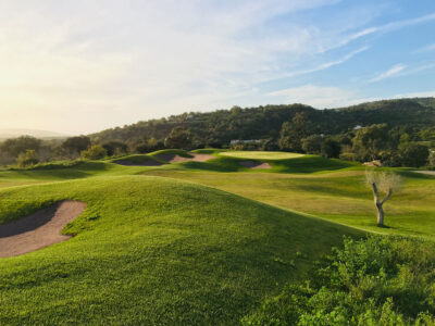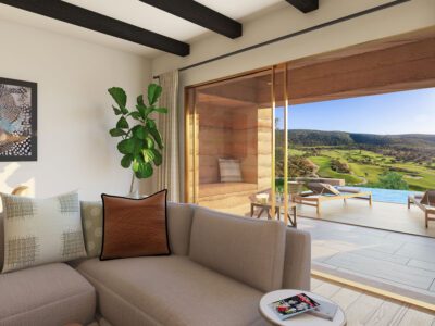 This new luxury residence of the Umbria Resort overlooks a hill and a golf course.