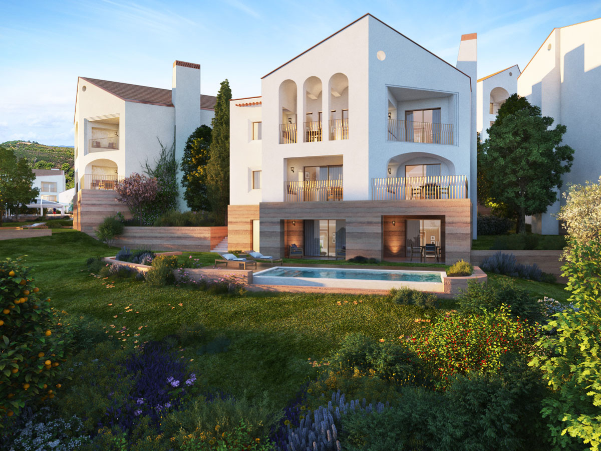 This new luxury residence of the Umbria Resort overlooks a hill and a golf course.