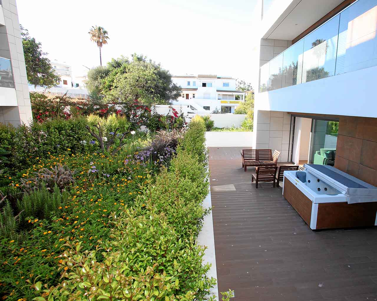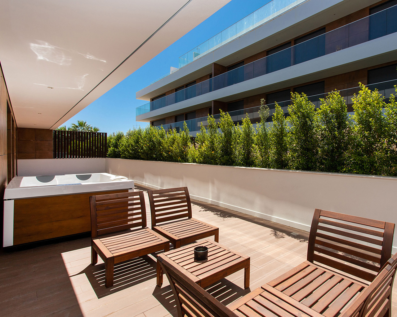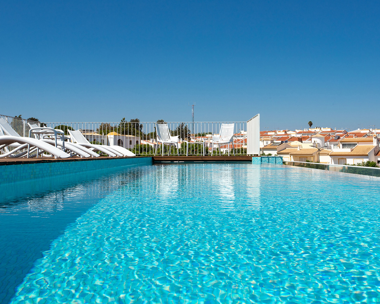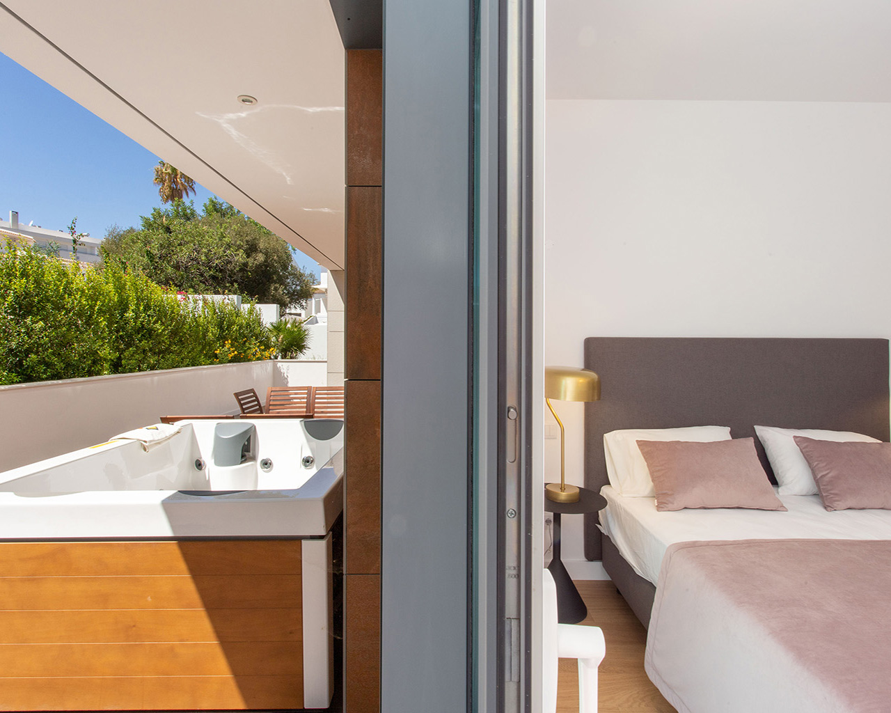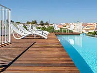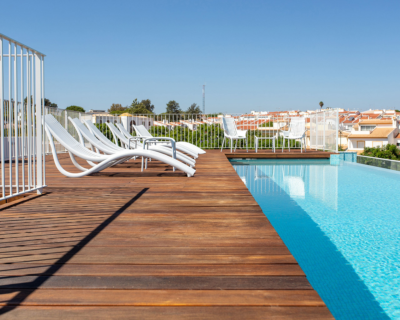 This high-end development in Albufeira stands out for its proximity to the seafront (7 minutes on foot), its privileged location in the heart of the historic center of the city, for its facilities with a rooftop swimming pool for each of the buildings of the condominium, for its outdoor spaces with large terraces and green areas.
