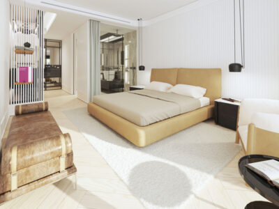 The apartment has 3 en-suite bedrooms. All bedrooms have built-in wardrobes / closets, private bathroom/ shower room, and the master bedroom a walk-in closet/dressing room.
