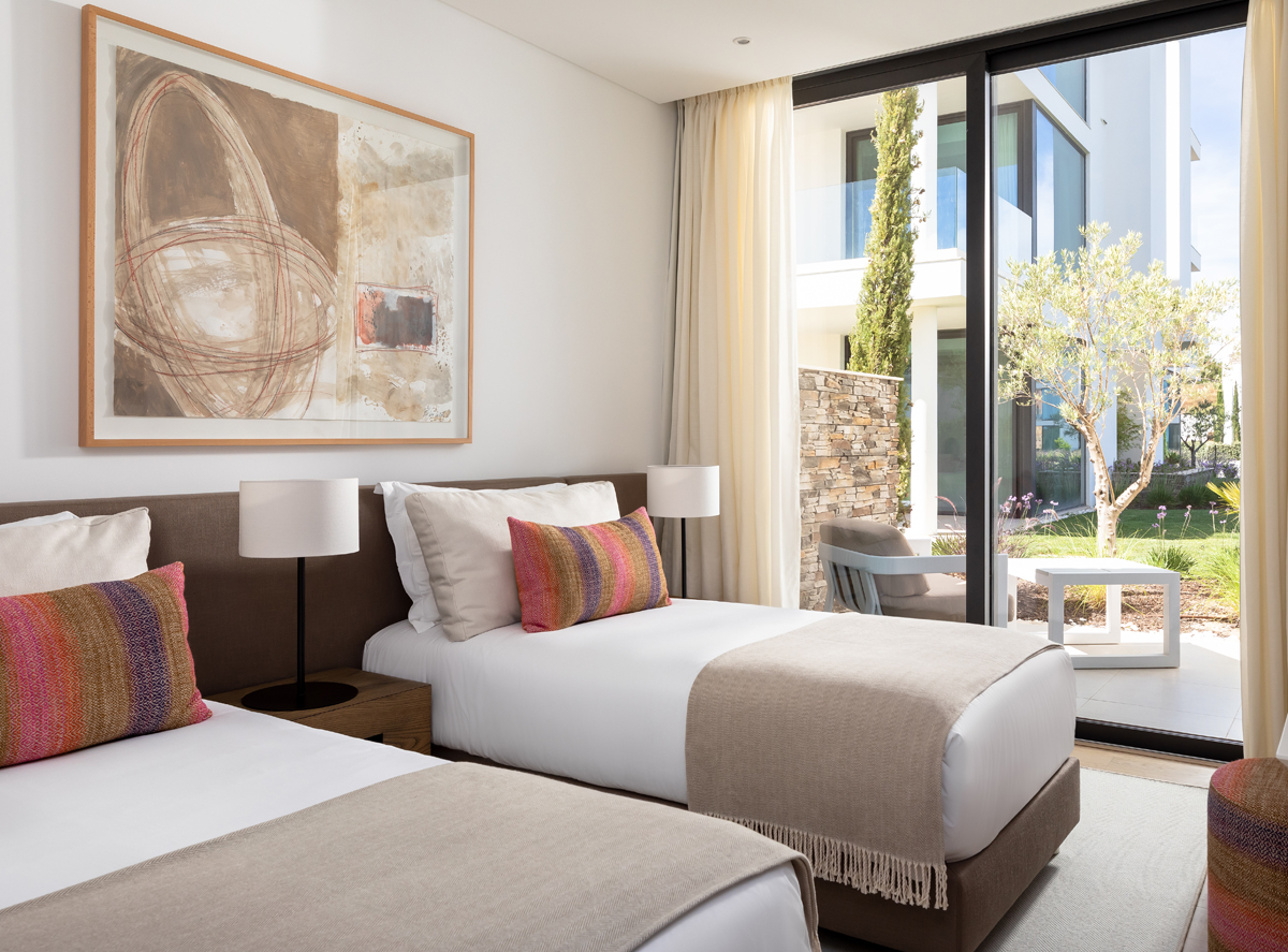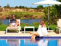 The apartment is located on the garden level of a modern building with 2 floors with elevator in a private residence in the area of Vila Nova de Cacela.