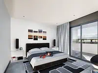 In the sleeping area, you will find : a comfortable master suite with dressing room of 17.15 sqm with covered terrace of 42.05 sqm and a bathroom with a toilet, bedroom of 14.25 sqm with covered terrace of 42.05 sqm, bedroom of 15.00 sqm with covered terrace of 42.05 sqm.