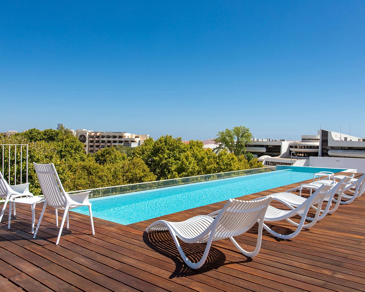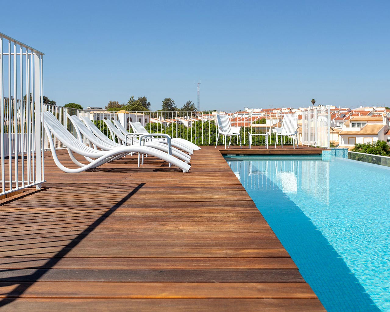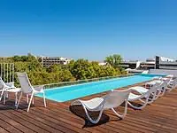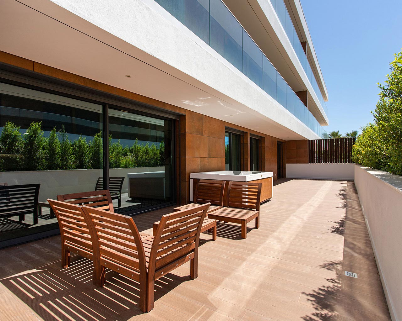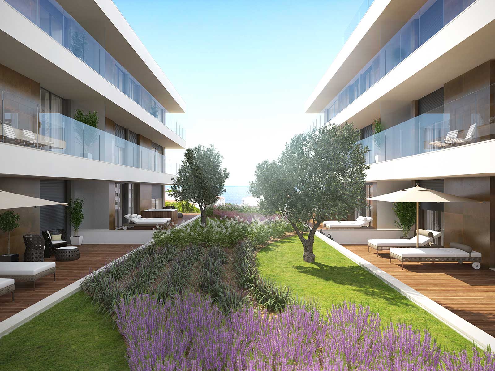 The ground floor and top floor apartments are distinguished by even larger terraces. The upper floors enjoy a magnificent sea view. And the penthouse apartments have a jacuzzi, solarium, and barbecue. The ideal place to enjoy the mild climate of the Algarve.