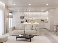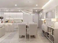 Apartamento T2 contemporâneo muito bonito, muito bem localizado, a apenas 500 metros da praia de Cabanas de Tavira, no Algarve, em Portugal.