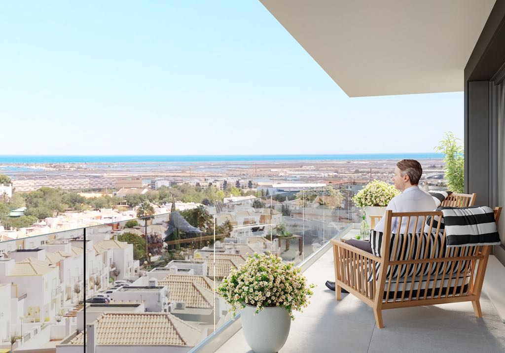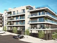 Para venda, belo apartamento novo de 2 quartos localizado no 2º andar de um pequeno condomínio de arquitectura contemporânea de 19 apartamentos, perto da praia, lojas e serviços.