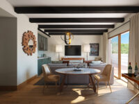 Este novo condomínio de luxo no complexo Ombria Resort tem vista para uma colina e um campo de golfe.