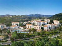 Este novo condomínio de luxo no complexo Ombria Resort tem vista para uma colina e um campo de golfe.