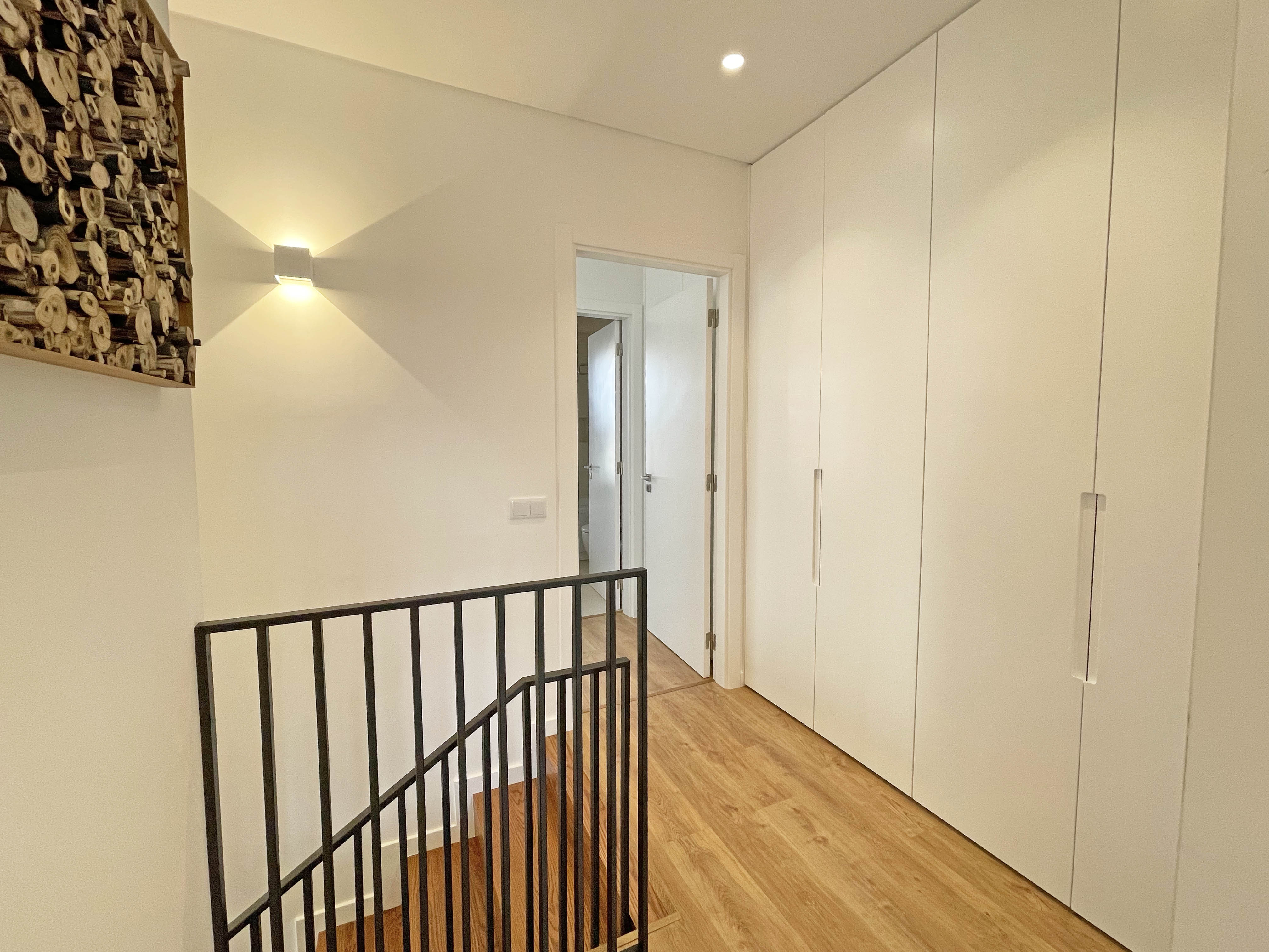 No primeiro andar, 3 quartos grandes, todos eles são suites equipadas com roupeiros e casa de banho privada.