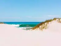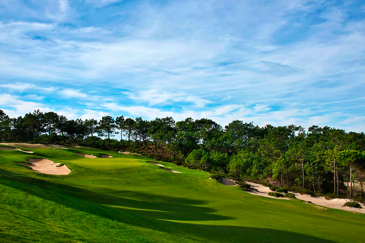 Dunas entrecortadas por vegetação costeira com pinhais com vista para o oceano. Este local privilegiado e exclusivo irá hipnotizá-lo e desafiá-lo a domar as forças da natureza e a aperfeiçoar o seu jogo.