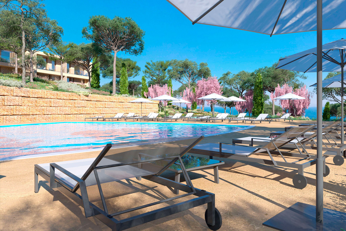 Uma residência de luxo que consiste em 96 habitações numa localização privilegiada no centro de uma herdade num campo de golfe.