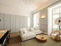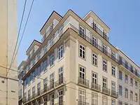 O apartamento está inserido num prédio de luxo, no coração da capital no bairro de Santa Maria Maior. Fica no 4e piso de um prédio tradicional de 5 andares com elevador.