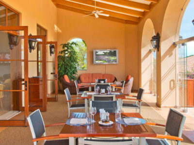 O apartamento está inserido numa residência de luxo, num condomínio fechado com campo de golfe no bairro de Vila Nova de Cacela. Fica no piso 0 (nível do jardim) de um prédio contemporâneo de 2 andares com elevador.