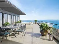 A residência tem também um ginásio, uma piscina infinita com vista para o mar, áreas de relaxamento, áreas comuns e espaços de trabalho, e estacionamento para residentes e visitantes.